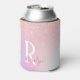 This pretty can cooler design features gradient faux pink rose gold glitter, rainbow background and elegant calligraphy font.