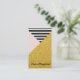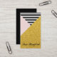 Classy business card. Glittering faux gold, blush pink, black and white striped geometric business card template.