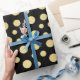 Elegant Modern Gold Faux Foil Polka Dots on Black Wrapping Paper