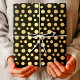 This luxurious wrapping paper features a modern design of elegant gold foil polka dots on a sleek black background. Ideal for weddings, birthdays, anniversaries, and other special occasions, this chic wrapping paper adds a sophisticated touch to any gift.