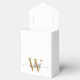 Girly Modern Elegant White and Gold Glitter Monogram Initial Name Signature Script Custom Personalised Favour Box. This design featuring your first name in a pretty hand lettered style swash tail font signature typography (or calligraphy) with monogram initial, above faux gold colour glitter block on white background. These stylish girly feminine gift boxes great for handing out, gifts, guest gifts and treats during an upcoming birthday party, BBQ, baby shower, sweet 16 birthday, wedding reception, bachelorette party, bridal shower, anniversary and more.