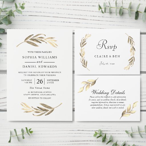 Modern Golden Leaf Wreath Wedding CollectionDesigned by Chris Ballester