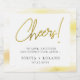 Modern elegant faux gold foil "Cheers!" lettering with golden glitter frame, personalised bottle label. Personalise text, customise font style, colour, and size.