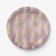 Elegant modern gold & pink Christmas tree pattern Paper Plate