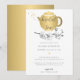 Elegant Modern Gold Pot Hearts Orchid Bridal Tea Invitation