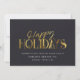 Modern minimalist business holiday card with elegant script calligraphy reading HAPPY HOLIDAYS in printed gold. Below is space for your custom message as well as additional space on the back over your corporate logo. This is the dark grey version.