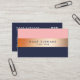 Promote yourself with Elegant Modern Gold Stripe Midenight Blue & Floral Coral Colour Combination Business Card with Social Media Icon (Facebook, Twitter, Instagram)