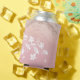 Pretty personalised can cooler design with ombre faux copper rose gold glitter texture, beautiful white flowers, pastel pink background and elegant calligraphy font. Personalise the product with your name or any other text.