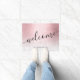 Gorgeous personalised doormat design with gradient faux pink rose gold, white marble texture and elegant calligraphy font. Personalise the product with your name or any other text.