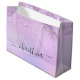 Gorgeous personalised paper shopping bag design faux violet glitter marble, colourful pastel purple texture and elegant calligraphy font. Personalise the product with a name or any other text.