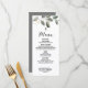 Elegant Modern greenery Baptism 4x9 flat Menu Card