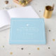 A book of blank pages in which visitors or guests at an event (such as your wedding) sign their names... your own names written in a thin white font style on solid clear blue cover... an elegant idea for your 'best day ever' memories