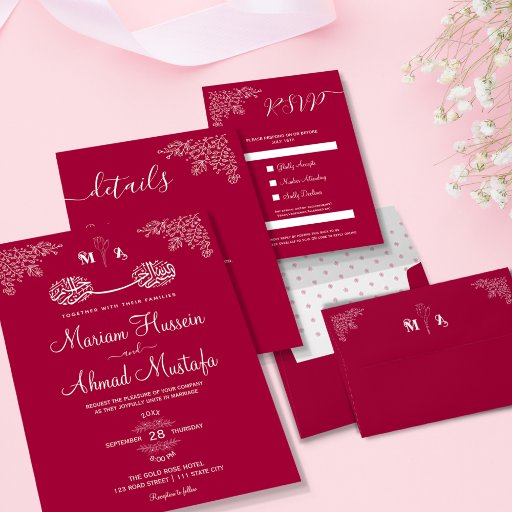 Elegant Modern Minimal Dusty Pink Islamic Nikah All In One Invitation