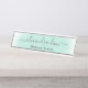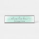 Stylish desk name plate design featuring pastel mint green and elegant calligraphy font.