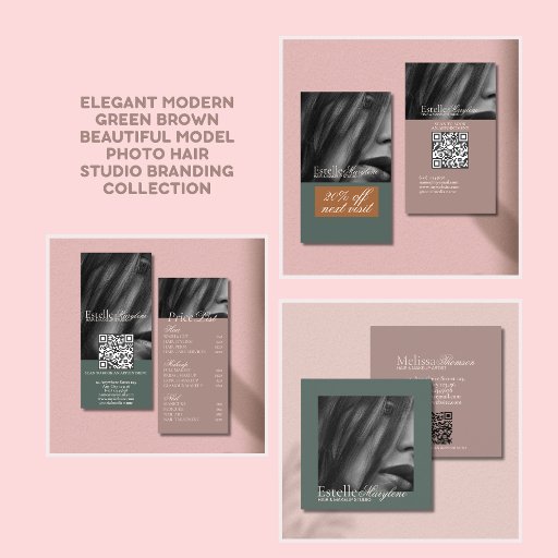 Elegant Modern Green Brown Photo Hair Studio Designed by Melissa G