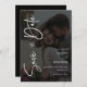 This trendy and luxurious Elegant Modern Minimalist Photo Save the Date card is the perfect choice for announcing your special day. This wedding save the date exudes a sense of sophistication and simplicity, perfect for couples seeking a minimal yet stylish design to set the tone for their upcoming celebration. The carefully curated layout allows your cherished photograph to take centre stage and symbolise the essence of your love story. The high end overlay beautifully complements the minimalistic calligraphy script typography, creating a timeless and refined aesthetic. Your guests will be captivated by the modern allure of this black and white card, making it a delightful keepsake that they'll treasure. Use the Design Tool to customise the photo placement, text font, colour, and size to your liking. For matching items, visit the Black Elegant Minimal Modern Dark Wedding invitations collection.