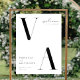 Modern Minimalist Black and White Wedding Welcome Acrylic Sign. Features elegant monogram typography and minimal graphic design. Personalise text with all the details of your special day.