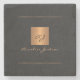 Luxury elegant black leather look stone coaster with a gold glitter monogrammed square and personalised name signature.
