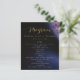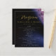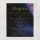 A few branches of eucalyptus leaves, hand-drawn in colour pencil and layered with shades of dusty and dark purple, make for a modern, sophisticated, elegant yet chic wedding program. The black and dark blue background with hints of purple and lights illuminate the midnight sky.