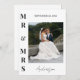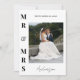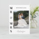 Celebrate your special day in style with this classic and elegant personalised wedding photo thank you card. Featuring a bold “Mr. & Mrs.” design paired with your new married name in a flowing calligraphy script, this modern minimal card is the perfect way to share your gratitude with family and friends. The back comes with a pre-printed thank you message that you can fully customise to reflect your heartfelt appreciation for your guests’ love, support, and thoughtful gifts. Add your favourite wedding photo for a personal touch that will be treasured by everyone who receives it. A timeless keepsake that combines sophistication with sentiment.
