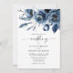 Elegant Modern Navy Blue Flowers & Script Wedding Invitation