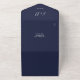 All in one navy blue wedding invitation featuring elegant calligraphy script typography and your special photo. The invitation includes a perforated RSVP card with your wedding website and QR code. Designed by Thisisnotme©