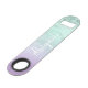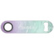 This pretty personalised bottle opener design features gradient faux mint green glitter marble texture, purple texture and elegant calligraphy font. Personalise the product with your name or any other text.