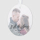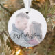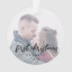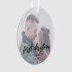 Minimal and modern personalized First Christmas ornament with elegant handwritten script lettering. Personalize the product with the year and two of your favorite photos.