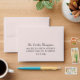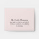Custom pale pink coloured wedding RSVP envelopes feature a modern and elegant custom soft black response address that can be personalised on the front.