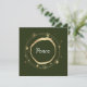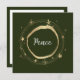 Spread the message of peace this holiday season. Beautiful modern gold star design surrounds the word of Peace. Green background. Add your own personal message. Perfect card to send to family and friends to let them know that you are thinking about them during the holiday season.