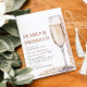 The invitation features a sleek layout with subtle pearl accents, symbolising purity and elegance. The addition of the prosecco glass adds a touch of celebration and effervescence to the overall design.