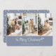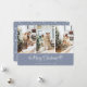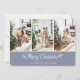 Cute photo collage Merry Christmas card featuring calligraphy greeting on the front and a starry pattern at the back. Easily personalise this modern photo holiday card with your photos, family name and the year.
