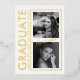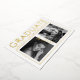 Showcase your graduate in a clean, modern way with this vertical photo graduation announcement. Designed with a magazine-style layout, soft white background, and refined gold foil accents, this announcement highlights two portrait photos alongside bold typography for a contemporary, editorial look. Fully customizable with the graduate’s name, school, class year, and future plans, this design is perfect for high school or college graduates. A polished keepsake for friends and family, it celebrates achievement with style, confidence, and sophistication. Please note that a black and white photo filter has been applied to the photo masks. This can be removed in "Design" mode if you desire color photos.