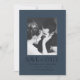 Announce your wedding with timeless elegance using this navy blue Save the Date card featuring a centred black-and-white photo and classic serif script typography. The rich border and minimalist layout offer a sophisticated, formal look—perfect for black-tie weddings, evening celebrations, or city venues. Fully customisable with your photo, names, date, location, and website for a refined and personal announcement.