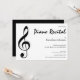 This stylish music or piano recital / concert invitation features a black treble clef and white text on a white background (black on the back of the card). It has a modern, sophisticated look. The background and text colours can be changed if you prefer, and all of the text is customisable using the Customise feature.