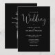 This black and white minimalist elegant script wedding invitation can be personalised with your information in chic typography with your wedding website details and your QR code on the reverse. Designed by Thisisnotme©