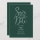 This emerald green elegant script wedding save-the-date invitation can be personalised with all your special wedding day information and wedding website QR code. Designed by Thisisnotme©
