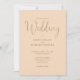 This soft peach minimalist elegant script wedding invitation can be personalised with your information in chic typography with your wedding website details and your QR code on the reverse. Designed by Thisisnotme©
