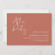 The party never ends! Organise your wedding after party with these modern invitations. A modern typography and a trendy terracotta, clay and peach colour palette for your wedding stationery: choose this simple and elegant wedding suite. Fully customisable: you can change the background as well as the text colour as you like.