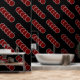 Elegant Modern Red White Circle Pattern Black Wallpaper