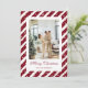 Modern red and white photo Christmas card featuring a red and white photo frame with stars and an elegant script font. Easily personalise this festive photo Christmas card with your photo and family name.