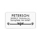 Elegant modern black on white return address labels featuring a classic sans serif font for a minimalist feel above a clean lined scroll.