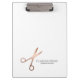 Modern and elegant design for hairstylists with faux rose gold scissors and elegant calligraphy font.