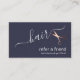 Modern and elegant design for hairstylists with faux rose gold scissors, elegant calligraphy font and blue background.
