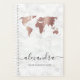 Stylish planner design which features elegant faux copper rose gold world map, white marble background and elegant calligraphy font. Personalise the product with your name and details.