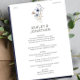 Beautifully designed wedding reception menu, featuring delicate wildflower and fern graphics in serene blue, green, and earthy brown tones. Clean, modern typography and minimalist composition create a timeless look on crisp white backgrounds, with options of a subtle pop of colour with coordinating blue or green reverse-side accents (see online shop). Perfect for couples seeking a blend of natural elegance and contemporary simplicity. ✦✦✦