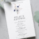 Beautifully designed wedding ceremony program, featuring delicate wildflower and fern graphics in serene blue, green, and earthy brown tones. Clean, modern typography and minimalist composition create a timeless look on crisp white backgrounds, with options of a subtle pop of colour with coordinating blue or green reverse-side accents (see online shop). Perfect for couples seeking a blend of natural elegance and contemporary simplicity. ✦✦✦