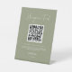 Elegant & modern sage green Honeymoon fund QR code Pedestal Sign