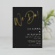 This wedding invitation features a big gold foil "We Do!" in handwritten script at the top on a black background, with the couple's names, date, venue, and wedding details in white below. A great fit for a couple who wants something bold, glamorous, and modern.