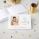 This gold foil wedding guestbook features a modern minimal design accented with trendy script text. Personalise with the names and wedding date of the couple along with their photo.
